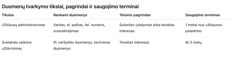 Šie duomenys naudojami tik tam tikslui, dėl kurio buvo pateikti (pvz., atsakymui į užklausą, vizų užsakymui)
